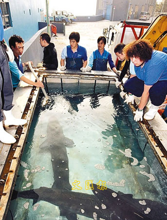 廈門基地負(fù)責(zé)人李奕慰說,一般與兩條病鱘一樣年齡10歲、身長(zhǎng)約2米的中華鱘,日進(jìn)食量應(yīng)該達(dá)到800至1000克,但6號(hào)鱘魚10多日來,日均進(jìn)食量都在100克左右,恢復(fù)較慢的8號(hào)魚是從一周前才開始進(jìn)行喂食,食量更僅有約80克,僅達(dá)正常食量的10%。
