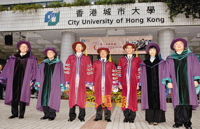 中新網(wǎng)11月9日電 香港城市大學昨(8日)舉行07年學位頒授典禮,向10,001名畢業(yè)生頒授學位,并同時向4名社會杰出人士頒授榮譽博士學位,包括長江制衣有限公司創(chuàng)辦人兼主席陳瑞球、香港合和實業(yè)有限公司主席胡應湘、著名藝人汪明荃及諾貝爾獎得主Claude Cohen-Tannoudji。