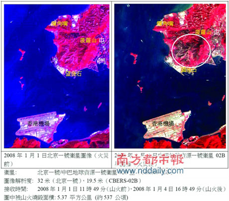 今年1月1日至3日香港屯門發(fā)生三級山火,在動用我國發(fā)射的兩顆衛(wèi)星進行精確遙感測量后,得出了精確的山林被毀面積為537公頃(約5.37平方公里),比香港消防處早期公布的350公頃過火面積有大幅增加。