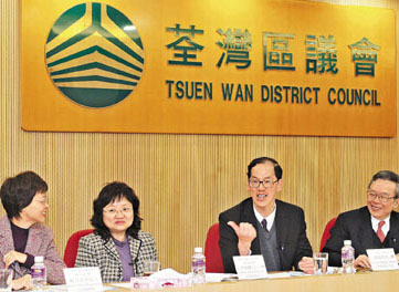 香港民政事務(wù)局局長曾德成22日在尤曾家麗、民政事務(wù)總署署長陳甘美華陪同下,出席荃灣與西貢區(qū)議會(huì)會(huì)議,聽取新一屆區(qū)議會(huì)的意見。