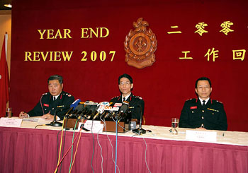 盧振雄29日在消防處工作回顧記者會(huì)上表示,2007年的火警召喚總數(shù)共31638宗,按年減少4.9%。94.32%的樓宇火警在規(guī)定召達(dá)時(shí)間內(nèi)到場(chǎng)處理,高于承諾指標(biāo)。