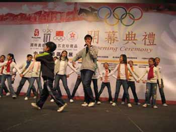 學(xué)生們專心為奧運百年珍品展開幕式彩排(大公報圖)