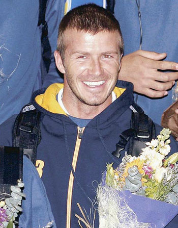 中新網(wǎng)3月7日電 據(jù)香港明報(bào)報(bào)道,英格蘭球星貝克漢姆隨美職球隊(duì)洛杉磯銀河6日旋風(fēng)式抵港,雖然到場(chǎng)接機(jī)的球迷不足100人,但首天已賣出約6000張周日友賽南華的門券。貝克漢姆及銀河教練似乎未受舟車勞頓影響,抵港不久即拉隊(duì)往中環(huán)蘭桂坊消遣。