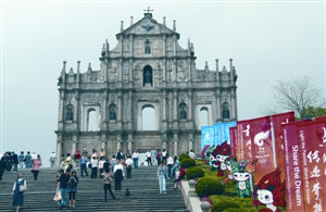 多個(gè)表演場地已加緊進(jìn)行布置,市面各處也布置一系列的宣傳品,中區(qū)各主要道路,以至通往大三巴等名勝古跡沿途,可見福娃造型擺設(shè)及北京奧運(yùn)彩旗,奧運(yùn)盛事氣氛漸現(xiàn)。