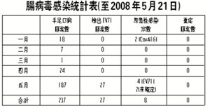腸病毒感染統(tǒng)計表(至2008年5月21日)。(圖片來源:澳門日報)