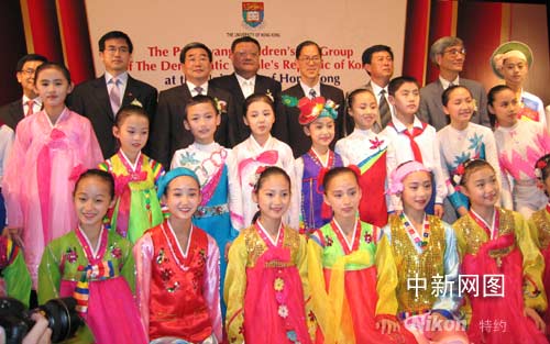 中新網(wǎng)7月14日電 朝鮮民主主義人民共和國平壤少年藝術(shù)團(tuán)今天在香港大學(xué)黃麗松堂舉行首場演出。這是有史以來首次有朝鮮藝術(shù)團(tuán)到港演出。
