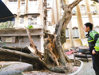 赤柱大街百年刺桐裂開倒塌,致壓死少女。(圖片來源:文匯報)
