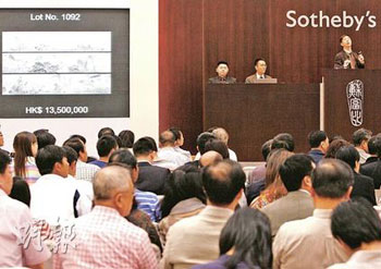 拍賣(mài)會(huì)氣氛尚算不俗,雖然有四分之一的作品被收回,但總成交價(jià)達(dá)1.16億元,比估價(jià)的9000萬(wàn)元高。