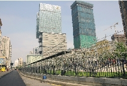 位于葡京彎附近臨時看臺開始搭建。(圖片來源:澳門日報)