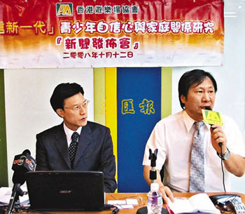 倪錫欽(左)預(yù)計經(jīng)濟再持續(xù)下滑,將會產(chǎn)生更多不快樂的父母,子女自然受到影響。(圖片來源:文匯報)