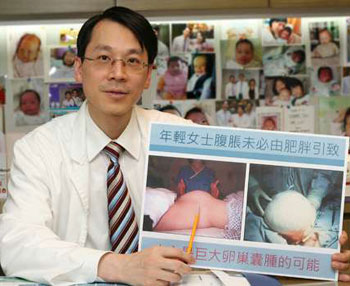 像王小姐的個(gè)案并不罕見。香港婦產(chǎn)?漆t(yī)生盧兆輝說,以他3、4年前在東區(qū)醫(yī)院的經(jīng)驗(yàn),每周也有4宗個(gè)案,一年約有200至250宗個(gè)案,不過未必每名患者的囊腫皆如此巨大,一般個(gè)案的囊腫直徑約10至20厘米。