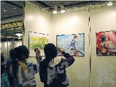 現(xiàn)場展出的漫畫作品吸引愛好者拍攝。
