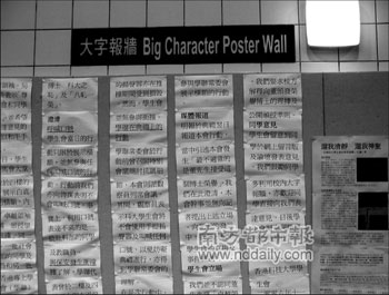內(nèi)地生抱怨在香港科大受到歧視,香港科技大學圖書館附近有個被稱為“民主墻”的公共張貼欄。在2007年7月,民主墻上就出現(xiàn)一個大字報,首次將內(nèi)地學生感覺被“侮辱”現(xiàn)象公之于眾。