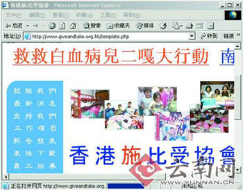 登錄香港“施比受協(xié)會(huì)”的網(wǎng)址后,記者發(fā)現(xiàn),這個(gè)網(wǎng)站上的首頁(yè)還在最醒目的位置,用紅顏色的大號(hào)字體滾動(dòng)著“救救白血病兒二嘎”這樣的內(nèi)容。然而大標(biāo)題中的主角“二嘎”由于病情的惡化已經(jīng)于5月下旬離開了人世(本報(bào)曾作過報(bào)道)。
