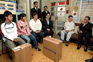 正在訪港的全國人大常委會委員長吳邦國一行二日傍晚來到位于深水埔的蘇屋村百合樓,探訪市民胡建榮一家,并向戶主送了一套茶具及一臺電腦。探訪后,戶主胡建榮對記者表示,吳邦國在胡家逗留約三十分鐘,表現(xiàn)得隨和、親切.......[全文]
