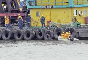 中新網(wǎng)2月14日電 香港土瓜灣海心廟公園13日上演一幕“海陸捉狗記”。一頭兩呎長(zhǎng)流浪唐狗,為逃避幾名漁護(hù)署捉狗隊(duì)隊(duì)員在陸上包抄圍捕,冒死跳海,在海中以“狗仔式”游了300米,再爬上一艘躉船的防撞輪胎內(nèi)喘息,勞動(dòng)消防處派出小艇協(xié)助載漁護(hù)署人員出海,用捉狗索將借水遁的唐狗捕獲,帶走檢驗(yàn)。