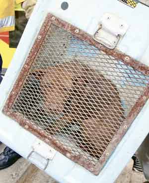 捉狗隊(duì)員見事敗,即向消防處求助,大批消防員趕到場(chǎng),而愛護(hù)動(dòng)物協(xié)會(huì)亦有派員趕到。由于跳海逃走的唐狗游出離岸300多公尺遠(yuǎn)的躉船,消防安排船只到場(chǎng)接載捉狗隊(duì)出海,再轉(zhuǎn)乘橡皮艇接近躉船船身,擾攘個(gè)多小時(shí),雖然唐狗曾再度跳海,但被捉狗隊(duì)員的捉狗索套緊頸項(xiàng)就逮,之后將其納入狗籠,乘船上岸,帶返九龍動(dòng)物管理中心接受檢驗(yàn)。