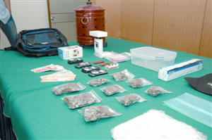 警員隨后帶同疑犯到其位于北區(qū)的寓所調(diào)查,在其睡房一個背囊內(nèi)發(fā)現(xiàn)電子秤、膠袋等懷疑毒品包裝工具。警員隨后作仔細(xì)搜查,在單位門外化寶盆內(nèi)發(fā)現(xiàn)一個密封的膠盒,內(nèi)里共有9包共重177克的毒品“大麻花”。