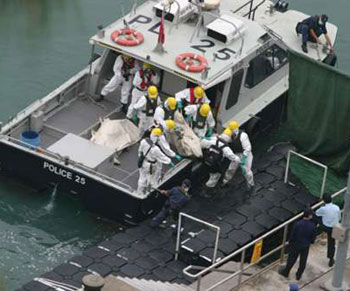 沉沒36天的烏克蘭補(bǔ)給船“Neftepaz-67”,日前被海上大力士“華天龍”號吊起后,搜索行動隨即展開。警方災(zāi)難遇害者辨認(rèn)小組近百成員,戴上防毒膠袍及口罩,配備手提電腦及大批搜索工具,聚集大欖水警基地,由多艘小艇送往大小磨刀洲現(xiàn)場,由28日凌晨搜索至28日晚上9時(shí)。