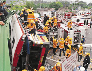 中新網(wǎng)5月6日電 據(jù)香港文匯報(bào)報(bào)道,上周四(5月1日)在香港西貢南邊圍回旋處釀成18死44傷的旅游巴翻側(cè)大車(chē)禍,一名于北區(qū)醫(yī)院留醫(yī)的45歲女傷者,經(jīng)5天搶救后延至5日終告?zhèn)夭恢,令大?chē)禍死者增至19人。