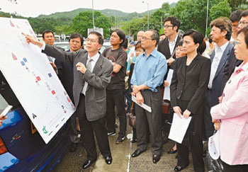 立法會(huì)共有7名議員到發(fā)生大車禍的事故地點(diǎn)考察,聽取路政署官員和警方交通部介紹事發(fā)路面的交通安全安排。