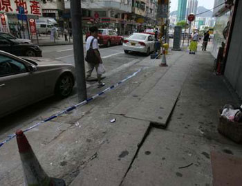 另外,高溫下土瓜灣北帝街出現(xiàn)懷疑“熱爆街”事件,行人路一幅約兩尺寬路面,突然石屎爆裂拱起約4寸高,不排除與天氣過熱有關。