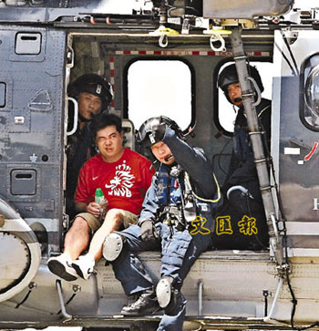 在東龍島爬山期間懷疑中暑的男子由直升機送院。(圖片來源:文匯報)