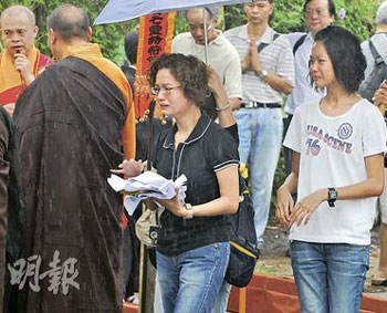 20多名親友拜祭后返回車(chē)上休息,蘇志豪的數(shù)十名同事則在路邊列隊(duì)默哀,神情肅穆。其后眾人圍著祭品鞠躬,各人在場(chǎng)逗留個(gè)多小時(shí)后離去。