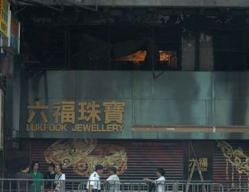 香港五級(jí)火災(zāi)閣樓卡拉OK夜總會(huì)一片焦黑。(圖片來源:大公報(bào))