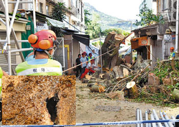 中新網(wǎng)8月29日電 據(jù)香港大公報(bào)報(bào)道,香港赤柱日前發(fā)生塌樹造成一死兩傷慘劇,康文署連夜將現(xiàn)場(chǎng)清理,鋸去樹干及樹枝,寫上編號(hào)運(yùn)走重組樹身研究意外成因。塌下的百年老樹樹身發(fā)現(xiàn)大洞,已遭嚴(yán)重蟲蛀。有專家疑與“刺桐姬小蜂”侵襲有關(guān),指香港的刺桐樹普遍被侵蝕,雖可殺蟲但不能根治。