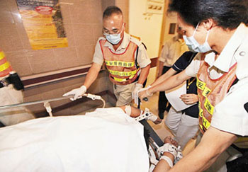 涉嫌發(fā)狂襲警、企圖搶槍被捕的小巴司機(jī)劉×杰(38歲),送院后由于情緒一直無(wú)法平伏,需由醫(yī)生注射鎮(zhèn)定劑后再推上病房觀察,其間,醫(yī)務(wù)人員為防萬(wàn)一,繼續(xù)將他的手腳捆綁。警方正調(diào)查他是否有精神病紀(jì)錄。