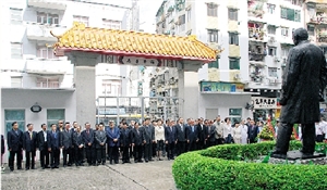 中新網(wǎng)10月10日電 據(jù)澳門日報報道,為紀念辛亥革命97周年,澳門社會各界人士9日在鏡湖醫(yī)院孫中山銅像前集會,向?qū)O中山銅像敬獻花籃,緬懷偉大的革命先行者孫中山。