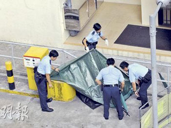 事發(fā)于28日早8時(shí)20分,身穿恤衫西褲的梁某離開何文田寓所,走到紅磡樂民新村樂善樓8樓梯間徘徊,不一會(huì),他跨過一米高的矮墻一躍而下,直墮停車場入閘機(jī)旁,路旁兩米欄桿被壓毀呈“V“形凹陷。保安員吳某驚聞巨響視察,赫見梁某倒臥血泊奄奄一息,大驚報(bào)案,救護(hù)員到場檢驗(yàn)后證實(shí)梁當(dāng)場斃命,毋須送院。