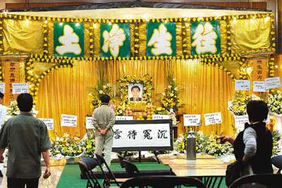 黎家對“差佬文”失蹤“打定輸數(shù)”,上月21日在世界殯儀館為“差佬文”舉行“無尸喪禮”,靈堂上放置“沉冤待雪”牌匾。黑白兩道近200人出席,警方曾派大批警員在殯儀館一帶戒備,并登記出席者身份,以防有人伺機(jī)生事。當(dāng)日出席“差佬文”喪禮者,包括與他同期警校畢業(yè)的影星陳惠敏、江湖人物“胡須勇”和不少老一代“江湖大佬”。 (陸展鵬)