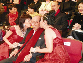 兩位司儀汪明荃和鄭裕玲左右親六叔。(圖片來源:文匯報(bào))