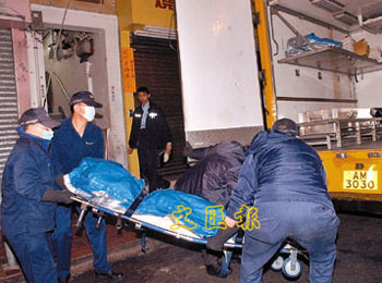 荃灣新村街被殺鳳姐尸體,由仵工送往殮房。(圖片來(lái)源:文匯報(bào))