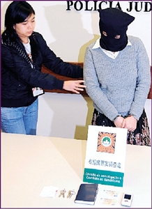 涉嫌“自導(dǎo)自演”禁錮勒索案女子被司警拘捕。(圖片來(lái)源:澳門日?qǐng)?bào))