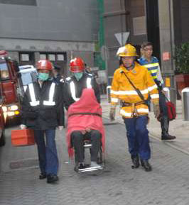 消防員接報(bào)趕到,在地面張開救生氣墊戒備,又派員上天臺(tái)嘗試走近游說,但事主一直情緒激動(dòng),無法收效。其妻子及女兒接獲通知趕到現(xiàn)場(chǎng)苦苦相勸,但不見效果,就在他與妻女傾談分神之際,在場(chǎng)消防員乘其不備撲前將他救返安全地點(diǎn),不致釀成悲劇。事主沒有受傷,后在妻女陪同下由救護(hù)車送往廣華醫(yī)院檢查。事件擾攘約半小時(shí)。