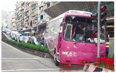 MI94XX號(hào)中澳旅行社大巴14日下午接載14名仁愛安老院長者和多名工作人員,到冼星海大馬路澳門回歸賀禮陳列館參觀后,回程返內(nèi)港仁愛安老院。約下午5時(shí),旅游巴經(jīng)松山隧道,由天橋下坡進(jìn)高士德大馬路時(shí),疑突然剎車失靈,高速狂沖下斜,當(dāng)時(shí)培正對(duì)面的交通燈位正亮紅燈,前方有一輛載有一名女乘客的的士在燈前等候。