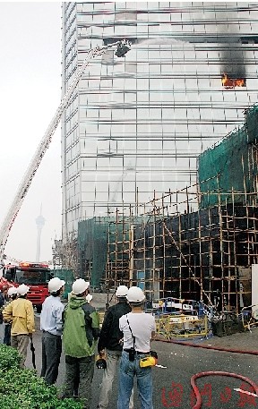 5日下午4時(shí)許,一號(hào)湖畔工地有工人發(fā)現(xiàn)酒店9樓有房間著火冒煙,立即報(bào)警。在消防未到達(dá)前,在該樓層工作的20多名工人立即逃走。大火產(chǎn)生的大量濃煙封鎖大樓梯間,并涌上更高的樓層,9樓以上工作的172名工人無(wú)法逃出,只有在25樓和40樓的防火層暫避,紛紛戴上口罩和用毛巾掩面,以防吸入濃煙。