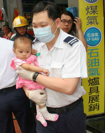 其時(shí),陳自己也感到手一陣赤痛!坝帽且恍,我已想到是硫酸之類!比缓,他帶受傷的一對(duì)南亞裔男女,走到附近檐篷躲避。走入檐篷,他發(fā)現(xiàn)年輕男子楊×倫(譯音,約23歲)及未滿1歲的女?huà)胪粸R傷。
