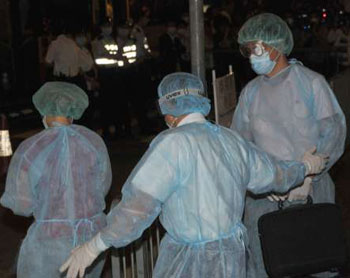 現(xiàn)場(chǎng)所見,氣氛較封鎖當(dāng)日平靜,戒備的警員和衛(wèi)生署人員相對(duì)輕松。直至10時(shí)35分,2名旅客穿上保護(hù)衣步出酒店,帶有3箱行李和2個(gè)黑色膠袋,神態(tài)自若登上救護(hù)車往機(jī)場(chǎng),隨行還有2名醫(yī)護(hù)人員,整個(gè)過程不消10分鐘。而在瑪嘉烈醫(yī)院隔離的2名墨西哥旅客也由救護(hù)車載往機(jī)場(chǎng)。