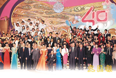 中新網(wǎng)11月20日電 香港無線電視為慶祝四十周年臺慶,昨(19日)晚舉行“萬千星輝賀臺慶”,今年的臺慶可謂雙重意義,除了賀無線四十周年外,還有老板邵逸夫爵士迎來百歲生日。當晚全臺藝員傾力演出,并起用十全十美司儀陣容:汪明荃、鄭裕玲、曾志偉、陳百祥、丘凱敏、陳敏之、葉翠翠、崔建邦、鄧健泓及王貽興。