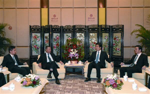 中新網(wǎng)3月18日電 據(jù)澳門日報報道,澳門特別行政區(qū)行政長官何厚鏵17日晚在北京釣魚臺山莊華天酒店與湖南省委書記張春賢、湖南省長周強會面。張春賢感謝澳門特區(qū)政府、澳門同胞對湖南抗冰救災(zāi)期間的支持。
