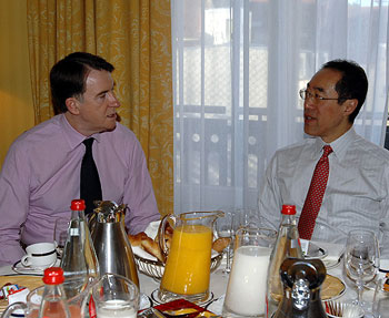 唐英年與歐盟貿(mào)易專員曼德爾森共晉早餐時強(qiáng)調(diào),香港繼續(xù)努力推動多邊貿(mào)易自由化,并期望香港與歐盟不斷加強(qiáng)雙邊經(jīng)濟(jì)聯(lián)系。他與比利時官員會面時,介紹了香港的最新發(fā)展,雙方均期望兩地貿(mào)易、投資、文化和教育有更多的交流和合作。