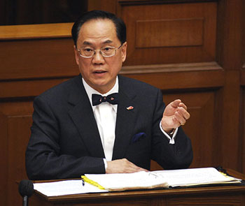 至于最低工資保障,曾蔭權(quán)重申,今年10月檢討完畢后,若證實(shí)成效不彰,或只有立法才有效的話,有關(guān)單位責(zé)無旁貸,盡快把正在草擬的法例,提交立法會(huì)審議。