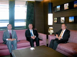 圖:何厚鏵同港澳辦副主任周波及陳滋英親切交談。(圖片來(lái)源:澳門日?qǐng)?bào))