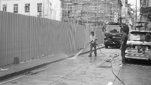 澳門民署派員清洗街道。(圖片來源:澳門日報(bào))