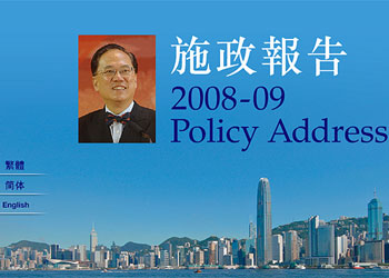 中新網(wǎng)10月14日電 據(jù)香港特區(qū)政府網(wǎng)站消息,行政長官曾蔭權(quán)周三(10月15日)上午11時(shí),在立法會發(fā)表《2008-2009年施政報(bào)告》,闡述未來一年的政策方向。報(bào)告全文在施政報(bào)告網(wǎng)頁同步發(fā)放。