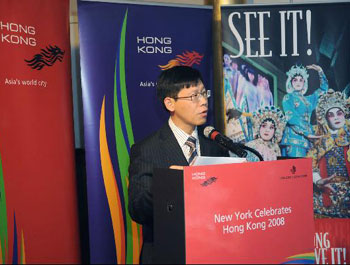 香港駐美國總經(jīng)濟(jì)貿(mào)易專員唐智強(qiáng)23日(紐約時間10月22日)出席“2008紐約香港節(jié)”的“香港美食饗宴”活動,向在場90多位名來自商界及媒體的代表致辭時表示,香港特區(qū)政府已因應(yīng)全球經(jīng)濟(jì)情況而制訂了兩項措施。